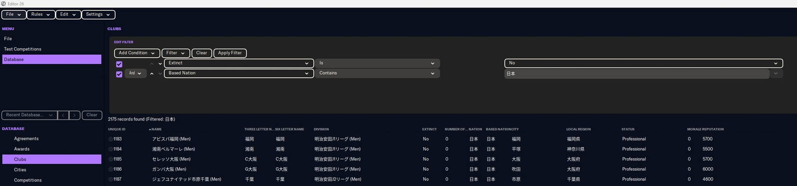 Please first expand the search limit to 10,000. There are over 500 data entries. The numbers include girls' clubs, but there are 2,175 clubs in Japan that are considered active. If we look at only boys' clubs, there are 2,109. We received confirmation that for clubs where activity could not be verified, feedback has been provided to the official, and corrections are scheduled to be made in FM27. FM26_Japanese_Club_Name_2600.lnc- Logo Update Thread (Men)