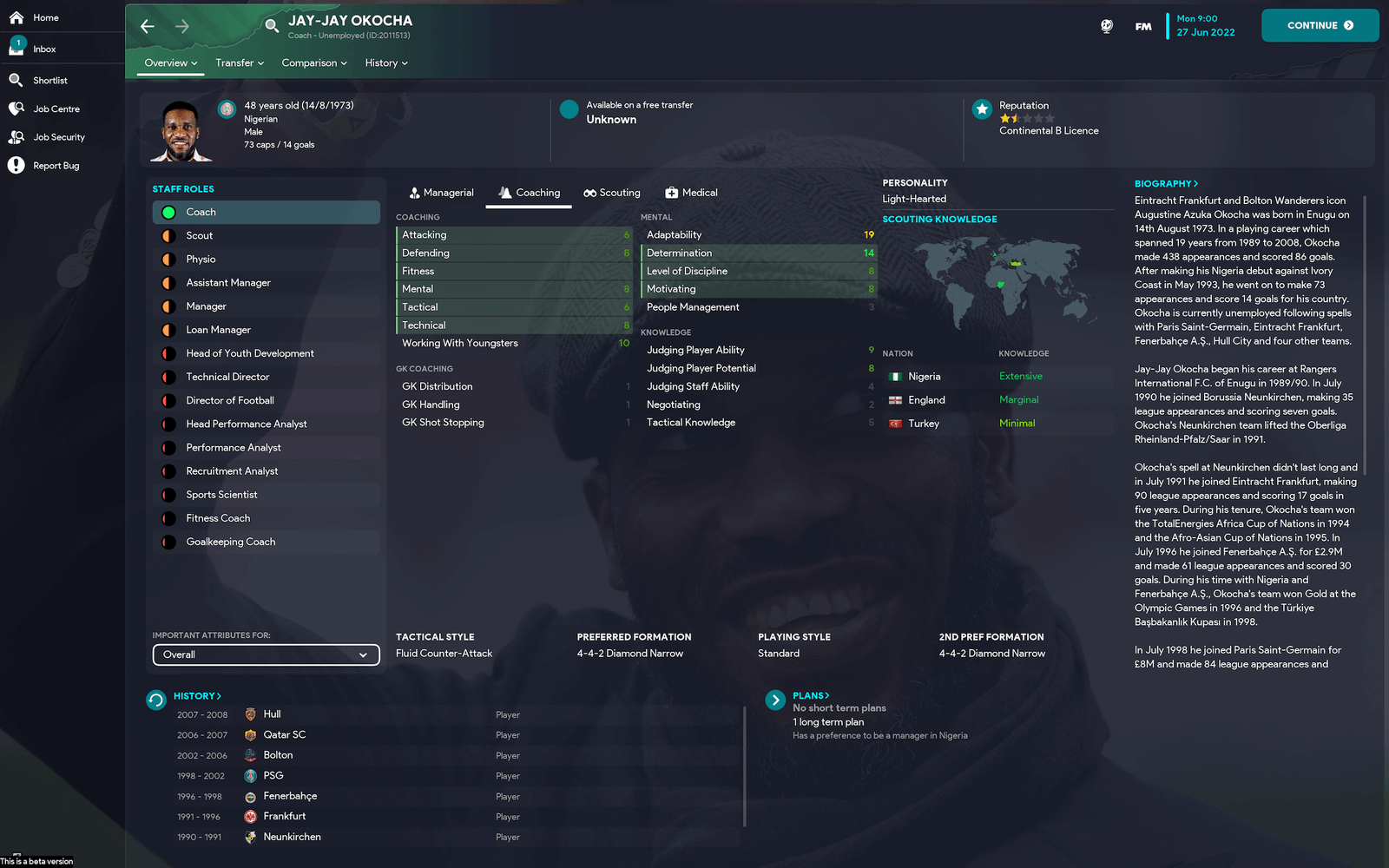 It currently covers 5900 manager/staff backgrounds from all over the world; club and country (including an extensive selection of club legends - who doesn't like signing a club legend to coach their under 18s? ). Ajax & Germany staff backgrounds match the Real Name Fix config codes from sortitoutsi.
