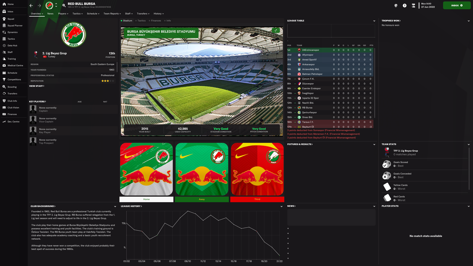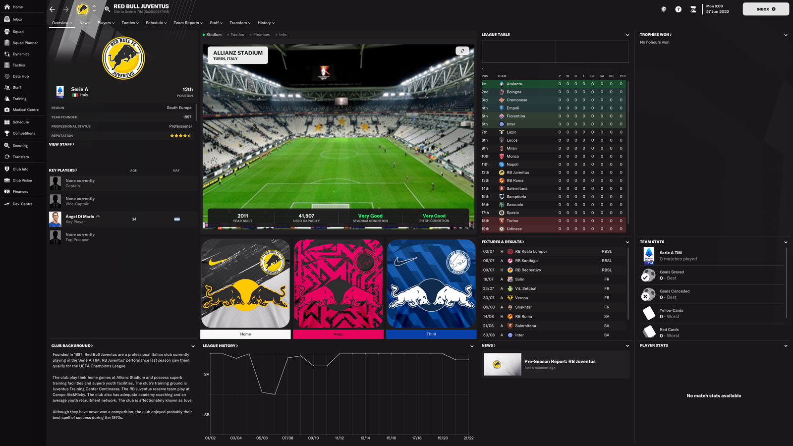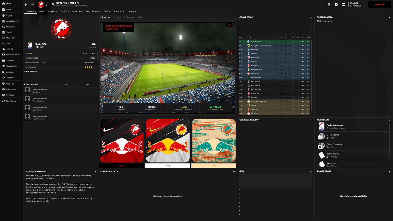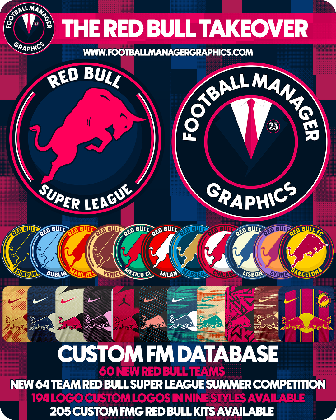 This custom database by Football Manager Graphics sees Red Bull dominate the footballing landscape with 60 new teams introduced across many countries, divisions and levels. The Red Bull Super League, a new 64 team competition sees the existing Red Bull teams take on the new in a month long summer competition.