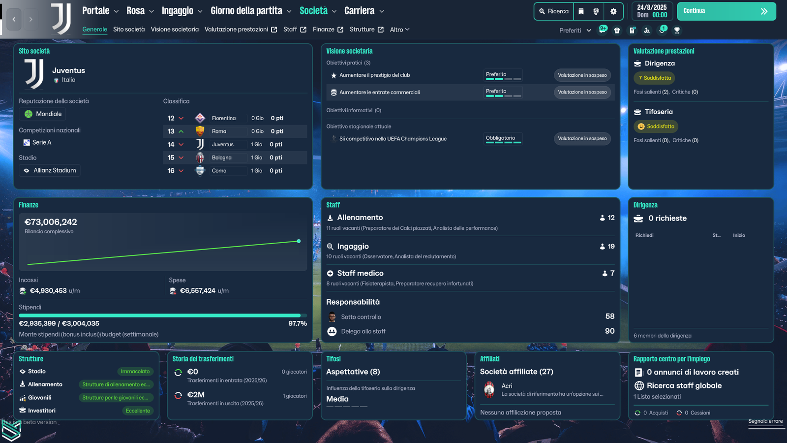 Material Skin FM24 v 1.01 Fixed bug of person, staff search dialog not showing v1.02 Fixed bug dialog in main menu Fixed transfer budget in scouting centre v1.03 Fixed condition hearts not updated during the match Fixed some small graphical bugs during the match v1.04 Fixed overview panel for small screen Fixed sidebar for small screen with only icons Updated the titlebar v1.05 Fixed overlay background to increase/decrease overlay Updated buttons in main menu Fixed scout recommendations grade in scouting centre v2.0 Updated manager home panel Updated squad indication prematch Added preferred foot in tactics Fix buttons "talk to" in the squad indication prematch Added background to "continue" button in match Other small fixes v2.0.1 Fixed main menu on monitor 2k and 4k (thanks to user Juankamelot) If you notice any bugs write me in private and I will try to solve ASAP. DONATION https://paypal.me/manuelalterio -