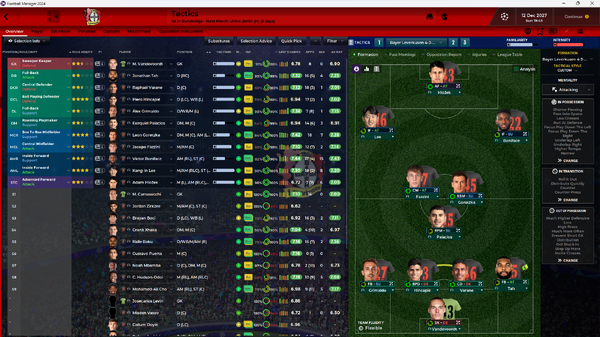 Update on Marzano's first full season with Leverkusen! I play all games in "extended" mode, no holidays, and play every match with full management (no "instant results") @Markitos signed some very promising talent, they all joined after end of season. I did feel some experienced players needed to be brought in though. As always I tried to make sure to be and stay sensible. I signed a good relatively young goalkeeper (Marco Carnesecchi, 8.5MM from Bologna), Defender (Raphael Varane, FREE), Defensive Midfielder (Yves Bissouma, FREE), Brahim Diaz (transfer listed by Real Madrid and a relative bargain for 38MM. Best addition to the squad was for sure Leon Goretzka (FREE) who is bossing midfield every week. Unfortunately we were unable to keep Florian Wirtz at Leverkusen, when Chelsea came knocking on the door and offered a total of 155MM and Florian indicated he was expecting to leave we made the decision to "cash in" and we were able to attract all the mentioned players with the funds available. These additions added more depth and experience and we mixed the match squad up regularly, rotating the team and playing some of the promising youngsters whenever possible . As mentioned Marzano adapted a solid 4-3-3 (quite a lot of changes from the 4-3-3 that @Markitos used, made some tweaks to the tactic after a short run of consecutive defeats (against RB Leipzig 1-2 and 0-3 at home against Bayern München). The game against Bayern was a very even match with xG very similar, but somehow they ran away with a 0-3 win............................................For the rest there was absolutely NO REASON to be sad. The team worked together and play is flowing really well. I have always felt completely in control, the one defeat at RB Leipzig was the only one where I was outplayed. In the Champions League results were even better, Leverkusen won all first 6 matches in a row, most notably a 3-1 win against Manchester City and a 2-1 win against Real Madrid. The match against Sampdoria at home for the Champions League was a special occasion for Marzano, he forced himself not to cheer even though he humiliated his old team with a massive 7-0 result. Qualification for the next phase was easy after this. I'm now in a short break at the end of December and when looking back Marzano has just renewed his contract with Leverkusen. Leading the Bundesliga with only 2 defeats so far and beautiful attacking football made the board ecstatic and eager to keep him for as long as possible at Leverkusen. Below some screenshots, to get an idea on the progress and tactical set up (lots of individual tweaks added where Inside Forwards take on defensive duties when out of possession and mark the oppositions WB/FB as an example). Will take a short break and continue my quest on Sunday!