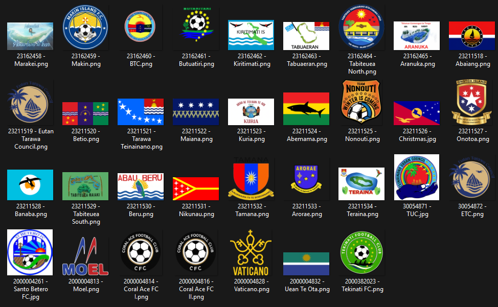KIRIBATI CLUBS FC Moel - Missing - ID 2000004813 Eutan Tarawa Council - ETC (Same Team ??) - New - Missing - ID 23211519 - 30054872 Tamana - New - ID 23211532 Tabiteuea North - Missing - ID 23162464 Beru - Missing - ID 23211530 Kiritimati - Missing - ID 23162462 Aranuka - Missing - ID 23162465