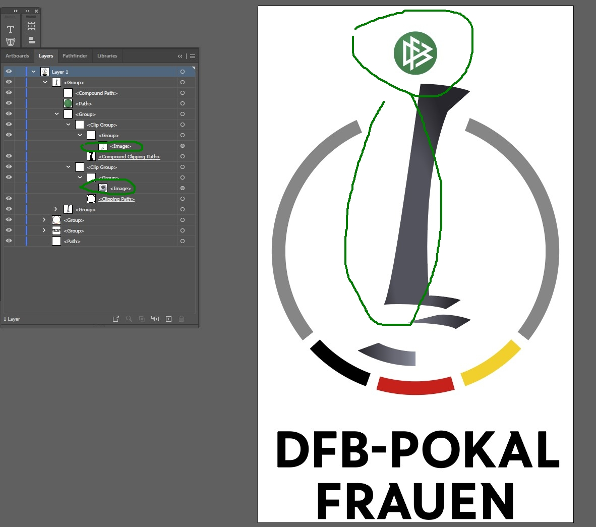 6. please don’t take the comment as criticism, that’s not what it was. there are often official logos that are really terrible and need to be cleaned up, because the design agencies figured, nobody will notice and it’s »good enough« -- and to be honest, who in their right mind would check all these logos? that’s where i come in. 😆 sadly, it’s what i expected -- the monochrome variants are true vectors, the effect variant is a raster image spiced up with vector elements. of course this won’t have any effect at, say 500 pixels. it’s more of a personal thing where i want all the vectors to be clean and polished. anyway, here’s what i mean: the highlighted part shows »image«, which means it cannot be edited in illustrator, inkscape or another vector program. it’s basically a jpg, png, something of that kind. i’ve turned off the visibility for it in the second screenshot.